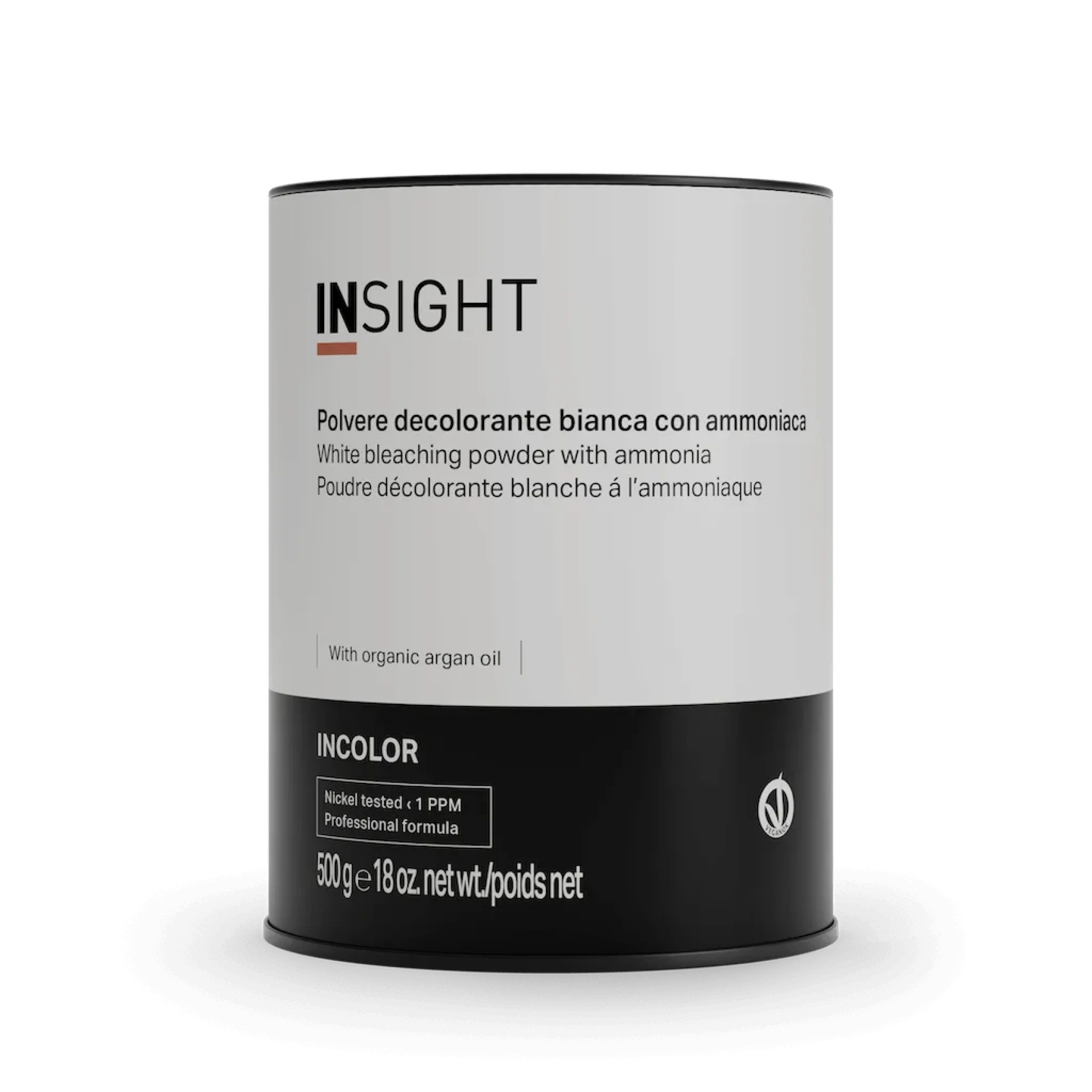 Persulfat de potasiu, Persulfat de amoniu, Metasilicat de sodiu, Stearat de sodiu, Gumă de guar (Cyamopsis Tetragonoloba), Paraffinum Liquidum/Ulei mineral/Huile Minérale, Carbonat de magneziu, EDTA tetrasodic, Silice, Amidon de porumb (Zea Mays), Ulei din sâmburi de Argania Spinosa, Laurilsulfat de sodiu, Parfum/Fragrance, Tetrametil acetiloctahidronaftalene.